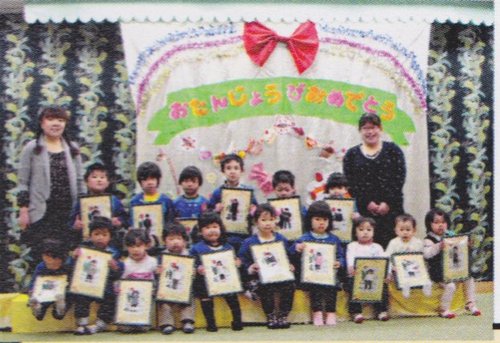 毎月、全園児が集まって、その月のお誕生日のお友達をみんなでお祝いします。